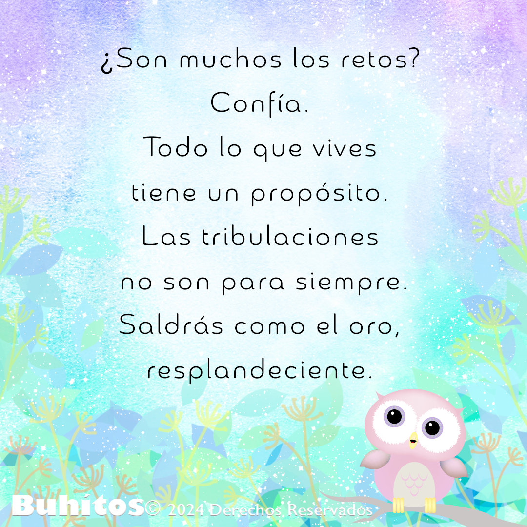 Los afanes de la vida, los obstáculos y tribulaciones pueden tener el efecto de desalentarnos. Aprender a manejarlos es importante pues son parte natural de la vida. Ahí es que la fe y la confianza nos ayudan a mantener serenidad y una actitud positiva que nos llevará a superar cualquier situación. No te rindas, retoma tus fuerzas y recuerda que todo pasa y vendrá un día mejor.